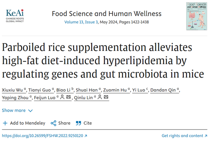 l 蒸谷米具有较强的降脂作用。