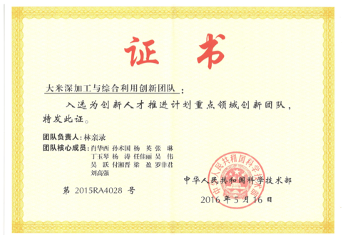 稻谷及副产物深加工国家工程研究中心(以下简称“国家工程研究中心”)于2011年5月经国家发展与改革委员会批准建设(发改办高技[2011]1246号),2015年12月顺利通过验收(湘发改高技[2015]1060号),2021年12月通过国家发改委优化整合工作纳入新序列管理(发改办高技[2021]1002号)。